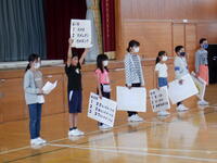 6月16日(金)の児童集会では、4年生が宿泊学習での活動とその振り返りについて発表しました。野外炊飯やアスレチック、ナイトハイク、宇宙大作戦でどんな活動をしたのか、また何を学んだのか。楽しいだけではない、意義ある活動だったことがよく分かる発表でした。「また行きたくなりました。」と感想を伝えてくれた6年生がいたほど良い発表でした。