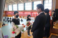 本日、離任式が行われました。4名の先生方とのお別れの日。子どもたちは、転出される先生方と今まで濃密な時間を過ごしてきたため、寂しさでいっぱいの様子でした。しかし式になると離任される先生方の話をしっかり聞きながら、今までの教えを思い出し、次年度は更に頑張ろうとする気持ちを高めたようです。
