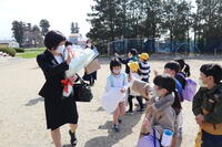 なお、離任式は、29日(水)に行います。児童の皆さんは、上履きを忘れず通常の時間に登校してください。