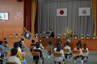 着任式に続いて、第1学期始業式が行われました。令和5年度のスタートです。校長先生からは、「勉強」「返事・挨拶」「運動」の3つを頑張ってほしいと話がありました。子どもたちは校長先生の目を見て、話をしっかり聞くことが出来ました。