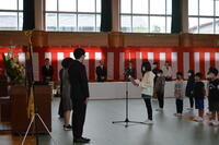 令和4年度最終日の今日。卒業証書授与式を前に1~5年生の修了式が行われました。1~5年生の姿勢のよさと1年生から始まった立派な返事の連鎖を見ると、コロナ禍にあっても今年1年間でしっかりと成長したことが分かるとても良い式でした。校長先生からも、この1年の成長に対してのお褒めの言葉がありました。