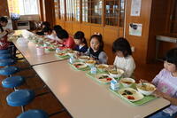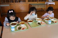 今日から給食スタートです。1年生にとっては、初めての給食でした。今日のメニューは、ポークミルクカレー、キャベツとわかめのふうみあえ、いちご、ぎゅうにゅうでした。1年生は、もぐもぐ美味しそうに食べていました。次の給食も楽しみです。