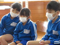 その後、子どもたちが避難した体育館で,スクールサポーターと塩川駐在所の方のお二人に、「いかのおすし」の大切さや、遊んでいるときに声をかけてきた不審者への対処の仕方を、具体的に教えていただきました。「助けて-。」という大きな声を出さなければいけないことは分かっていても、いざとなるとなかなか出せないことも分かったようです。ご協力いただいた警察署の方々、ありがとうございました。