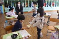 9月30日(金)の2校時目に、山都小学校の栄養教諭の加藤真理先生をお招きして、「食事のマナーを守って食べよう」をテーマに食育の授業を行いました。正しいマナーを確認するためのクイズでは、子どもたちは大変盛り上がりました。「口に食べ物が入っているときには話をしないこと」や、「姿勢をよくして食べること」に加えて、箸の持ち方や食器の受け取り方も学習し、これから自分が頑張りたい目標を決めました。目標を達成できるよう、毎日の食事で気を付けてほしいと思います。ご家庭でのお声がけもよろしくお願いします。お忙しい中、今週2回も来校してくださった加藤先生、ありがとうございました。