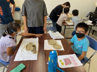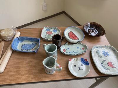 子どもたちは、猫やハートの形のお皿、トトロのマグカップなど、思い思いの作品を作っていました。親子揃って仲よく楽しい活動になったようでした。