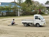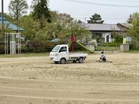 暖かいを通り越し暑い日も増え、校庭の雑草が目立つようになってきました。そこで、保護者の渡部源一郎さんと栢場晃司さんのご協力により校庭整地を行っていただきました。きれいになった校庭で、運動会に向けた練習をがんばっていきたいと思います。本当にありがとうございました。