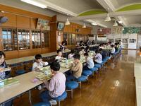 今日から早速給食も始まりました。1年生にとって初めての給食。食堂で、2年生と一緒においしい給食をいただきました。一緒といっても黙食ですが、2年生の準備や片付けの様子を見ながら学んでいました。2年生も下級生ができたことで、何だか誇らしげに見えました。