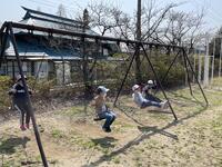 初めての昼休み時間には、久しぶりに使用できるようになったブランコで遊ぶ子、友達と校庭いっぱいを使って鬼ごっこを楽しむ子と、風の強い中ではありましたがこれまで静かだった校庭に、子ども達の歓声があがっていました。