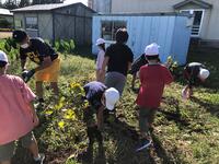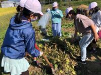 今日は、3・4年生で大豆の収穫をしました。7月には緑色の小さな枝豆でしたが、約2ヶ月で大きく生長・乾燥し、たくさんの大豆に変身していました。
