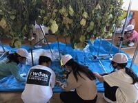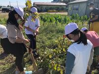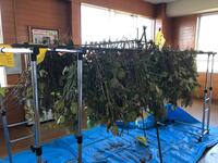 今日一番大変だったことは、引き抜いた枝をさらに乾燥させるために干す作業です。仁先生が用意してくれた手作り物干しに、一生懸命枝をくくりつけました。途中、干した枝が全て落っこちるという大ハプニングもありましたが、みんなで協力して全ての枝を干すことができました。