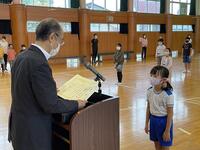 今日から10月。令和3年度も折り返しました。校長先生から,16日に開催される2年ぶりの堂島フェスティバルに向け,全力で練習に取り組むようにとのお話がありました。その後,喜多方市発明展の賞状伝達や,体育主任から11月のマラソン記録会に向けた「学年パワーアップチャレンジ月間」の説明,生徒指導主事からは帰宅時刻の確認が行われました。