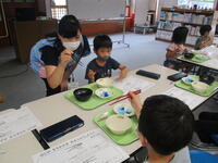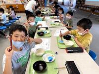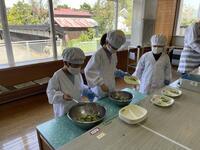 今までの給食は,食堂で先生方が配膳し,それを子ども達がそれぞれとっていく形式でした。しかし,2年生は今日から自分たちで配膳をして,給食を食べることになりました。小松菜サラダとグリーンポテトの担当の子にとっては,初めての配膳にドキドキのようでした。緊張しながらもこぼすことなく上手に配膳できました。明日はご飯の日。明日も上手に配膳できますように。