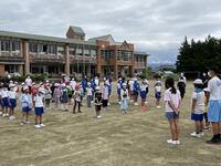 月曜日の午前中から気持ちのよい青空が広がりました。2時間目の休み時間には,チャレンジタイムで久しぶりに全校生が校庭に出て一緒に走りました。