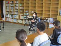 3日(金)の2校時目に,6年生は山内アイ子先生にお越しいただき,昔語り体験を行いました。今回は,アイ子先生に「みしらず柿」「木ぼとけ長者」「かっぱのきず薬」等,5つのお話を聞かせていただきました。子ども達は,「昔語りとはどういうものなのか」「どのような工夫がされているのか」といったことを実際に感じた上で,アイ子先生に質問していました。間の取り方や強弱の付け方といったコツについて理解できた子ども達。今後は,自分で覚えたい昔語りを選び,各自練習に入る予定です。