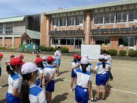 3日(金)の2時間目の休み時間。突然非常ベルが鳴りました。子ども達にとって予告なしの避難訓練(火災想定)です。非常ベルの音に驚いて,校庭から校舎に戻ろうとする子,放送をしっかりと聞こうとその場に立ち止まって耳をすます子,いろいろな様子の子どもが見られました。「避難開始」の放送から校庭の指示された場所に全校生が避難完了するまでにかかった時間は,2分弱。避難自体はとても落ちついて行動できていました。全体会では,非常ベルが鳴ったときの行動について,教頭から指導がありました。災害はいつ、どこで起こってもおかしくありません。非常事態だからこそ,「自分の命は自分で守る」ために自分がとるべき行動について考えるよい機会となった避難訓練となりました。
