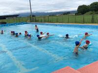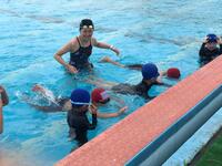 1・2年生は既に3回目の水泳学習で水には慣れっこです。水に顔をつけるのもへっちゃらな様子で、ニコニコしながら活動をしていました。この調子で、新しいことにどんどんチャレンジして欲しいと思います。