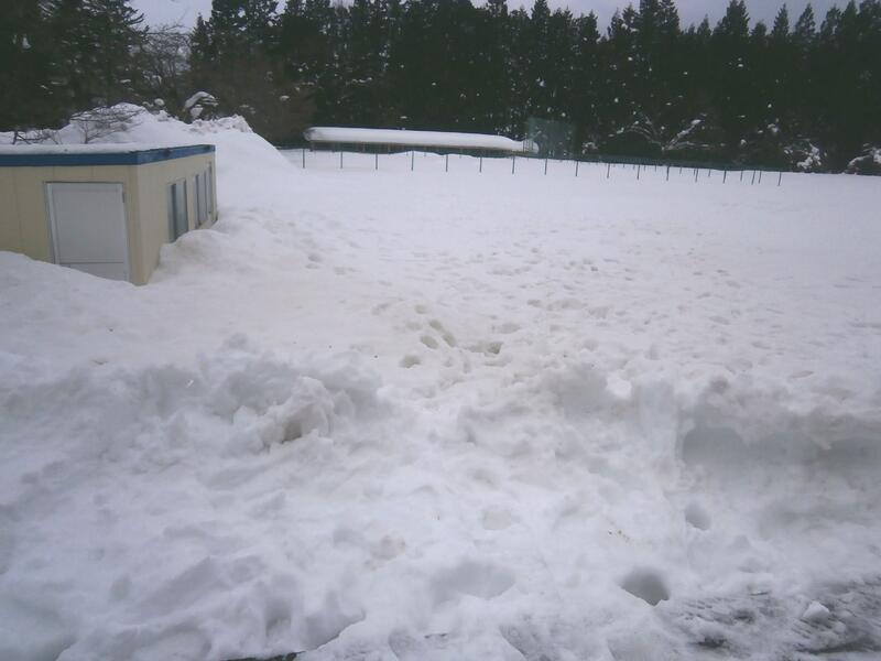 (体育館北側は2階と雪面がつながりました)