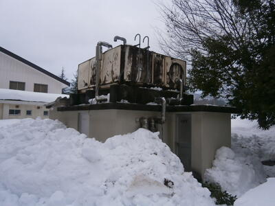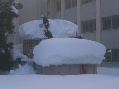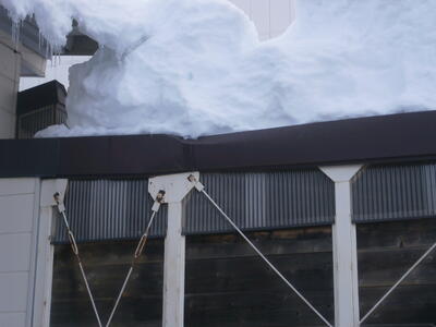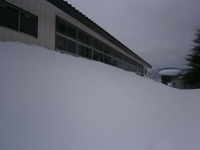 これまでの雪で会北中学校の校舎からランチルームへとつながる渡り廊下の屋根は変形し始めていました。