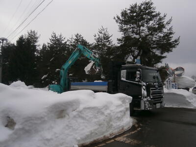 見通しを少しでも解消して安全が確保されるようにと、本日は朝方から重機、ダンプカー等による除雪作業を行っていただいております。