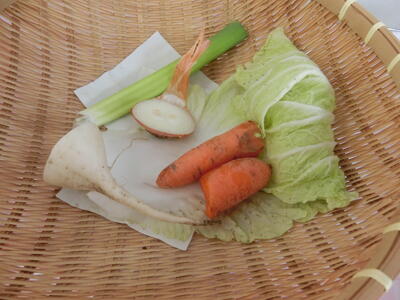 <本日のまごころ野菜> だいこん、にんじん、たまねぎ、長ねぎ、キャベツ