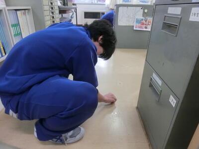 2025年1月24日 16時19分清掃中に、自分の分担の作業を終えた生徒が、残った時間でさらに学校をきれいにしようとがんばっています。
