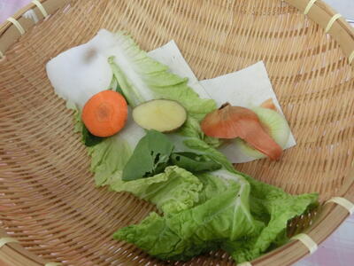 <本日のまごころ野菜> はくさい、にんじん、たまねぎ、さつまいも