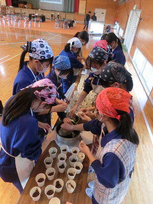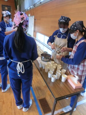 調理係の生徒のみなさんは、つゆもちだけでなく、あんこもちの準備も行いました。