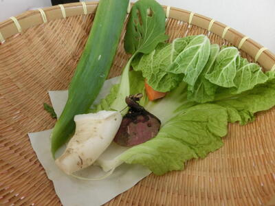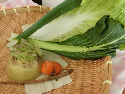 <本日のまごころ野菜> だいこん、にんじん、あおな、はくさい