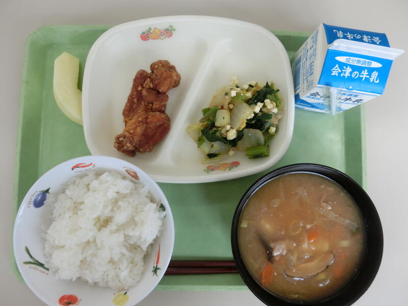 カミカミメニューというテーマで、熱塩小学校の1・2年生が献立を考えてくれました。「からあげ」は、大きな切り身なので、よくかんでかみ切りましょう。
