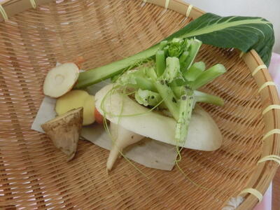 <本日のまごころ野菜> ヤーコン、じゃがいも、だいこん、たまねぎ、あおな