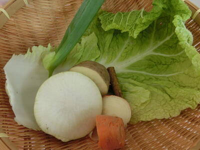 <本日のまごころ野菜> だいこん、はくさい、にんじん、長ねぎ