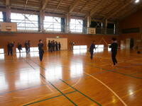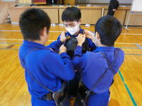 2024年12月3日 10時29分先週の土曜日には校庭が雪で一面真っ白になり、寒さがいよいよ本番にさしかかる中、体育では剣道を行っています。