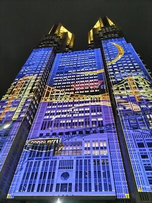 2024年7月9日 21時59分ホテルに到着する前に、東京都庁のプロジェクションマッピングを鑑賞しました。