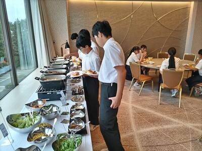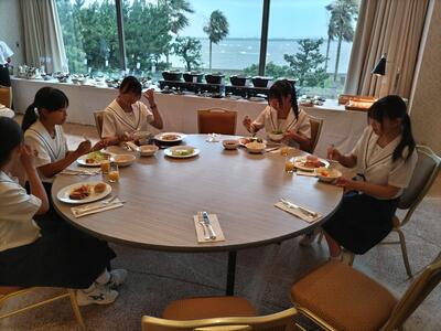 会北中学校専用の朝食会場で、落ち着いて食事をすることができました。