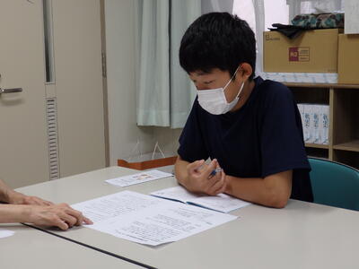就労継続支援事業についての説明を受けていました。この後、事業で製造された品物の販売に同行しました。