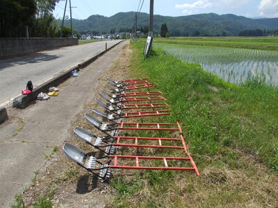 他の地域では「ころがし」「田転がし」「田車」などと呼ばれているようです。農林水産技術会議事務局筑波産学連携支援センターのウェブサイトでは「水田除草機」と総称されています。大正時代から昭和20年頃まで使用されていたとのことでした。