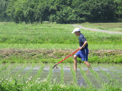 稲は順調に育っていますが、有機無農薬栽培のため雑草も同様に育ってしまいます。