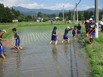 学校田の除草作業を行いました(6月14日)