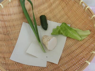2024年6月20日 13時59分本校の給食には、地域の生産者の方々から毎朝届けられる「まごころ野菜」が使われています。