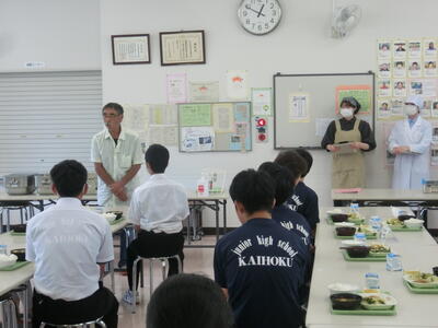 今日は、その生産者の方々を学校に招き、お話を聞いたり感謝の思いを伝えたりするための会食を行いました。