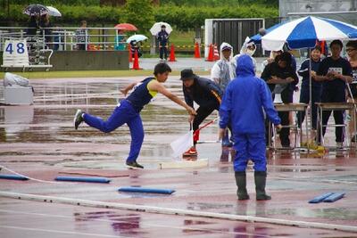 一日を通して雨の降り続く、とても厳しい状況でしたが、会北中学校の生徒たちは全力で競技にのぞみました。