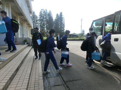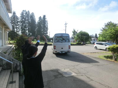2024年5月14日 08時25分全会津中体連陸上大会は2日目を迎え、さわやかな晴天の中選手が出発しました。
