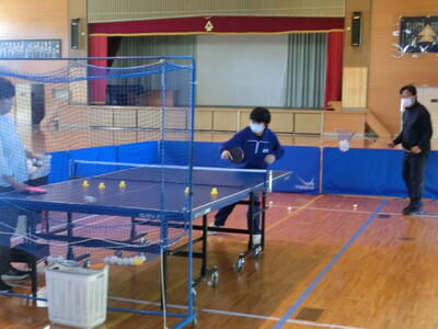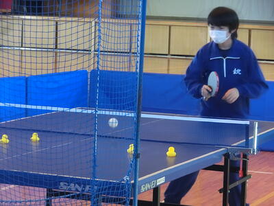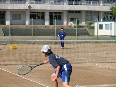 この日は生徒1名に、顧問教師2名がついて練習していました。1年生もどんどん上達しています。