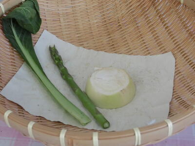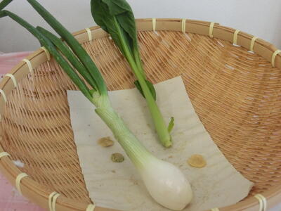 <本日のまごころ野菜> 葉たまねぎ、たけのこ、打ち豆