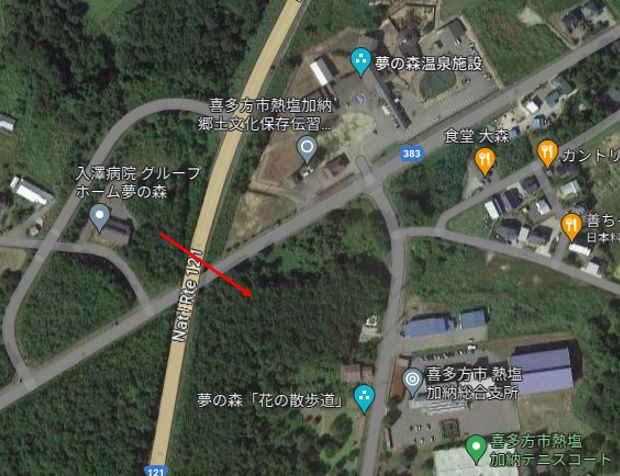 本日(9/12)午後6時頃、グループホーム夢の森近くの立体交差道路付近で、体長150cmほどの熊が、南から北へ道路を横切っていったとの目撃情報でした。