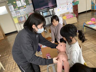 お母さんのおなかの中でどうやって大きくなってきたのか学んだり、あかちゃんの人形を抱っこしてみたりして、命の尊さを感じた時間でした。