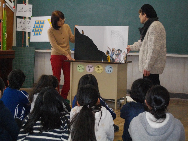 2017年2月17日 13時50分 本校では、月に一回、外部講師による読み聞かせを行っています。今回は4~6年生を対象に行いました。拡大絵本を使って行いましたが、子どもたちは真剣にお話を聞いて、童話の世界に引き込まれていました。協力いただいた講師お二人に心から感謝しています。