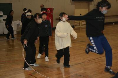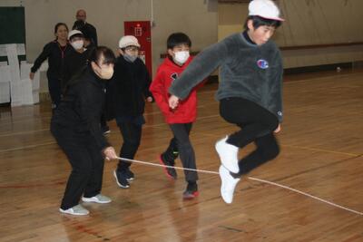 2024年1月18日 15時32分上三タイムは、全員で長縄跳びにチャレンジ!5分間で跳べた回数を記録します。まずは1回目。みんな慎重に跳びますが、48回。もう少し記録を伸ばしたいところ。第二回目。体も温かくなって、縄のスピードにも慣れました。記録は118回。1回目の倍以上の記録です。みんなで目標と心を一つに頑張ると、素晴らしい力を発揮する、上三宮の子どもたち!素晴らしい!