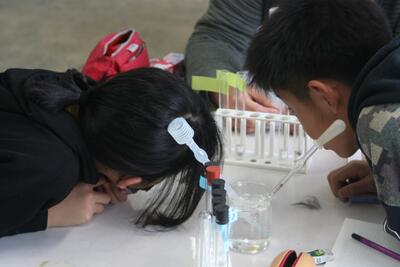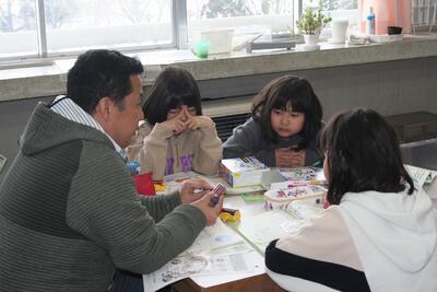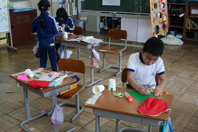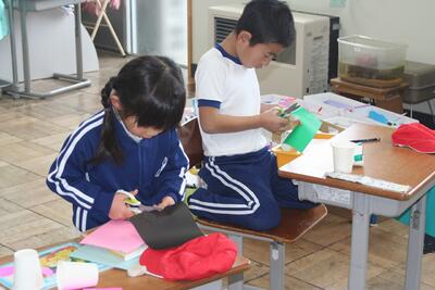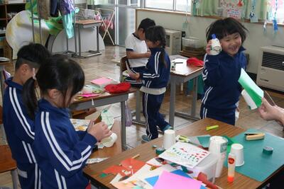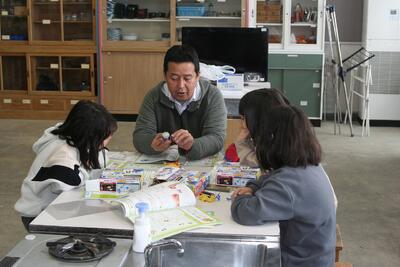 2024年1月18日 15時35分3年生が理科の学習をしていました。電気の回路の学習です。電池からどのように電流が流れているか、みんなで考えます。6年生の理科は、水溶液の学習です。スチールたわしを水溶液に入れて変化を調べます。泡を立てて溶けている水溶液を発見!すぐに水溶液が塩酸であることがわかりました。1,2年生は生活科でびょんコップづくり!楽しく取り組んでいます!