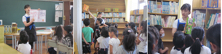 新しくなった所を中心に、本の並びや探し方など、図や実際にその場でていねいに説明していただきました。これまで以上にたくさんの児童が利用してくれると思います。3・4・6年生には10月にオリエンテーションを行う予定です。